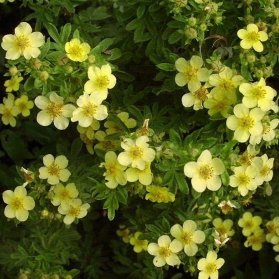 Лапчатка Elizabeth. Листопадный кустарник 1 м высоты. Крона 1 м диаметром, округлая, плотная, густооблиственная. Листья непарноперистые, с пятью-семью тесно скученными листочками, листочки ланцетные, голубовато-зеленые. Цветки 3-4 см диаметром, светло золотисто-желтые, очень многочисленные.