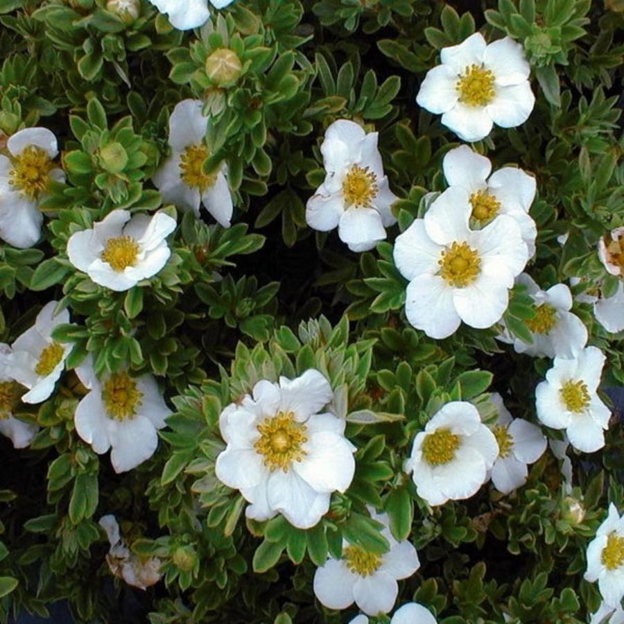 Лапчатка кустарниковая Крем Иссима - компактное растение. Листья темно-зеленые. Цветки многочисленные, кремовые, мелкие. Цветет сорт с июня по август.