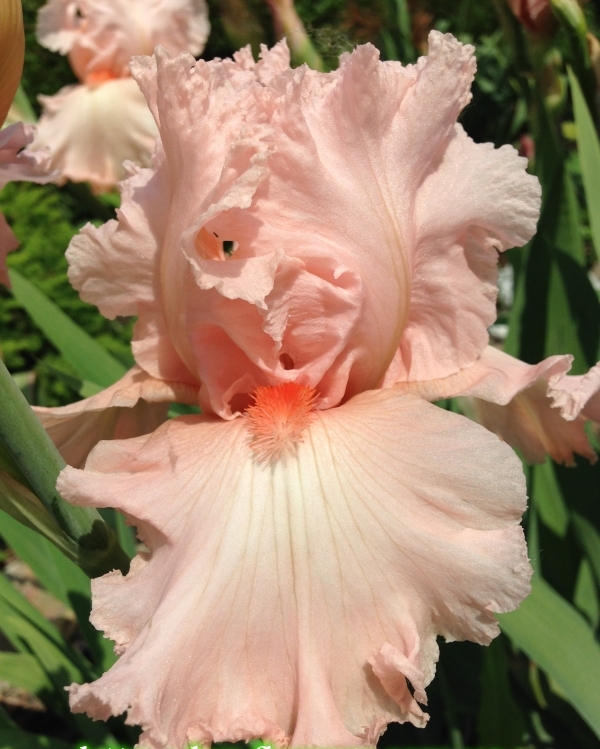 Beverly Sills отличается очень нежной, кораллово-розовой окраской с кораллово-красной бородкой. Очень кружевной и гофрированный. Высота цветоносов достигает 90 см.