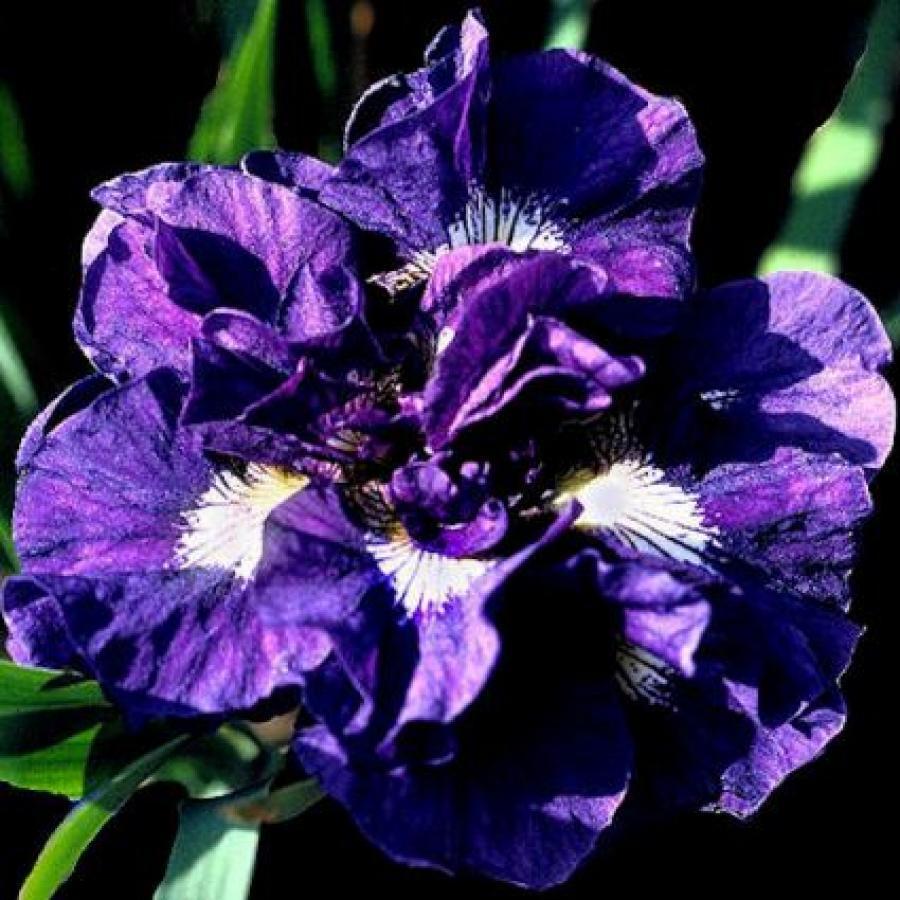 Ирис сибирский Каблуе (Iris sibirica Kabluey) привлекателен своей махровостью. Формируют стебли длиной около 70 см. Листики светло-зеленые, линейной формы, узкие, удлиненные. Лепестки темно-сиреневые. В области бородки просматриваются незначительные белые и оранжевые штрихи. Размер цветка достигает 14 см. Бутоны распускаются в мае и июне. Ирис хорошо себя чувствует на плотных почвах, удерживающих влагу. Но при этом не терпит подтопления, длительного переувлажнения. В северных широтах может расти на открытом солнце. А вот в южных регионах нуждается в полутени.