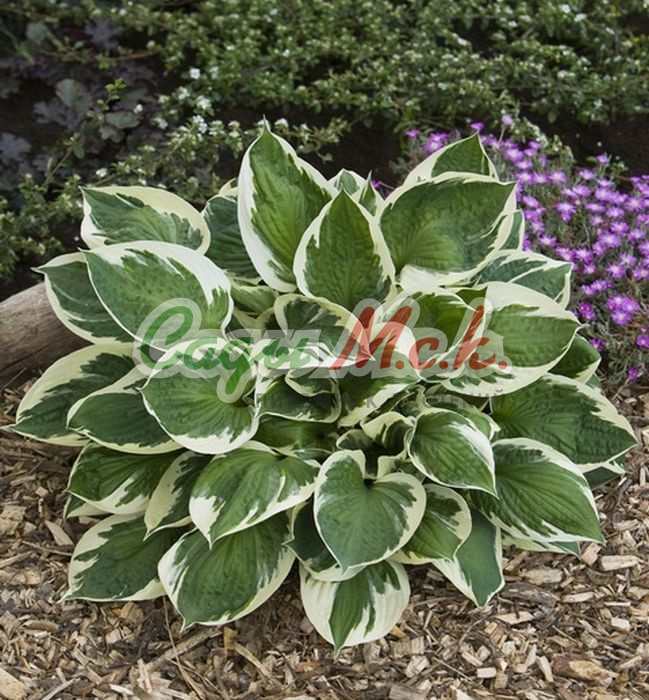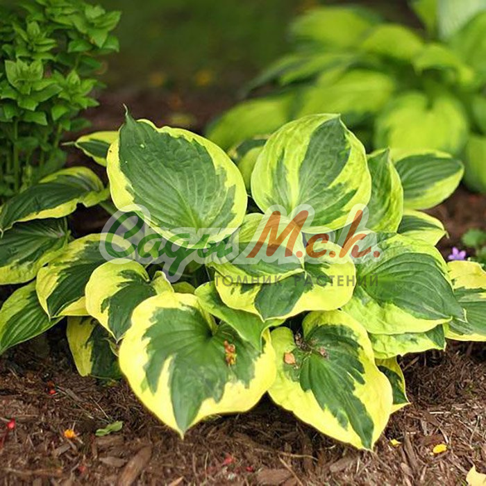 Хоста Аnn Kulра – многолетнее декоративное растение, образующее ярусный куст высотой до 50 см. Листовые пластины достаточно плотные, шелковистые, со слегка волнистым краем, небольшими выемками и сильно выраженным жилкованием. Они образуется весьма декоративный, плотный и компактный куст, который в середине лета зацветает, выбрасывая цветоносы с небольшими, лавандового цвета колокольчиками. Но заметным растение становится благодаря цвету своих декоративных листьев. Сердцевидные, голубовато-зеленые с золотисто-кремовым центром и зеленым краем – такую красивую окраску невозможно не заметить. Со временем светло-кремовый центр становится шире, а вот окантовка листа, наоборот, сужается. Гибридный сорт хорошо себя чувствует и в тени, и на солнце, предпочитая купаться только в утренних его лучах. Он может длительное время расти на одном месте. Но для сохранения расположенной по центру полосы его желательно часто делить.