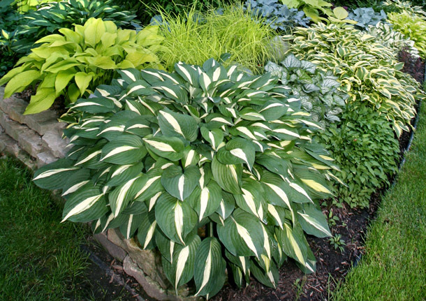 Хоста Whitе Bikini – привлекательное изящное растение средних размеров. Образует плотный куполообразный куст, достигающий полуметровой высоты и в диаметре до 70 см. У него крупные, слегка вытянутые листья сердцевидной формы. Они привлекают внимание своей декоративностью – темно-зеленые с яркой тонкой белой полоской по центру. В середине лета распускаются нежные лиловые цветки, которые цветут долго и обильно. Сорт желательно высаживать в тени или полутени на питательных, влажных почвах. Растение смотрится эффектно и в одиночку, и в группах.