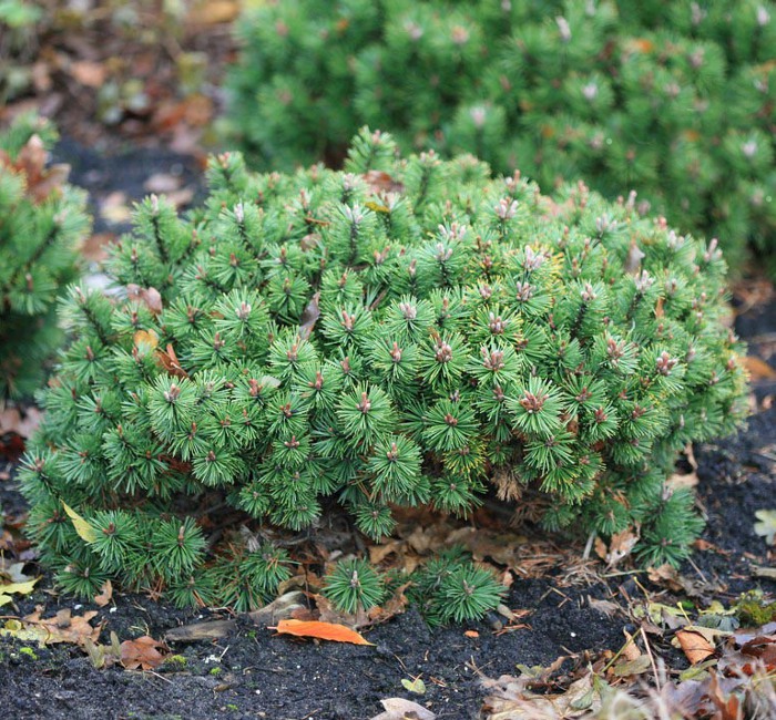 Сосна горная Humpy - карликовый кустарник с компактной уплощенно-овальной формой кроны в молодом возрасте и несколько подушковидной ассиметричной в более зрелом. В высоту кустарник достигает 0,8-1 м, в ширину 1,5 м. Кора от серовато-бурого до темно-серого цвета. Скелетные побеги густо расположены, короткие, толстые, многочисленные, разрастаются неравномерно, сильно ветвятся. Хвоя собрана в пучки по 2 штуки, серповидная, скрученная, короткая, блестящая, темно-зеленого цвета, на молодых побегах плотно прижата, а на старых – отстоящая. Зимой хвоя приобретает серовато-бурый оттенок. Длина хвои 4,5-5,5 мм. В зимний период очень эффектно смотрится с многочисленными красно-коричневыми почками. Шишки яйцевидной формы, 2-4 см в длину, темно-коричневого цвета.