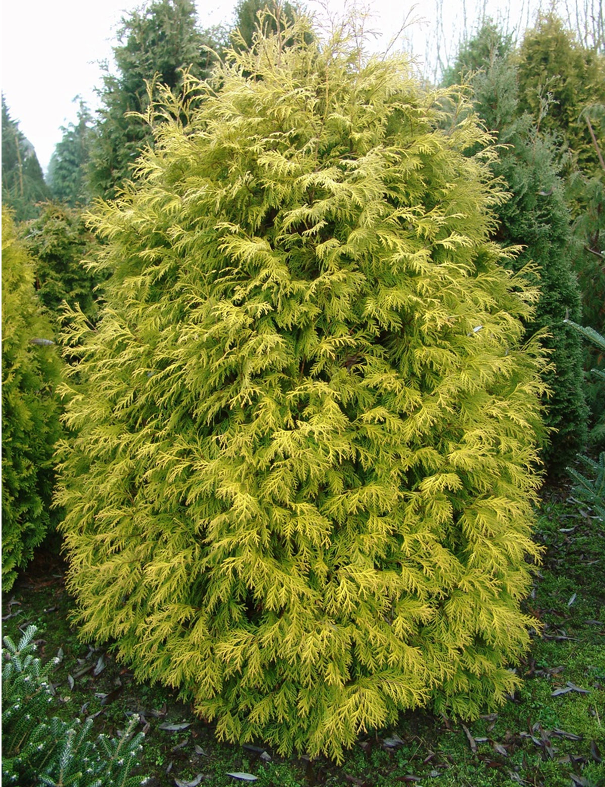 Туя западная Holmstrup Yellow - небольшое дерево, отличающееся плотной широкой колонновидной формой, достигающее 4 м высоты и 15 см годового прироста. Желтая хвоя удерживается весь год,хорошо растет на солнечных местах. Сорт хорошо годится для низких изгородей и композиций в контейнерах.